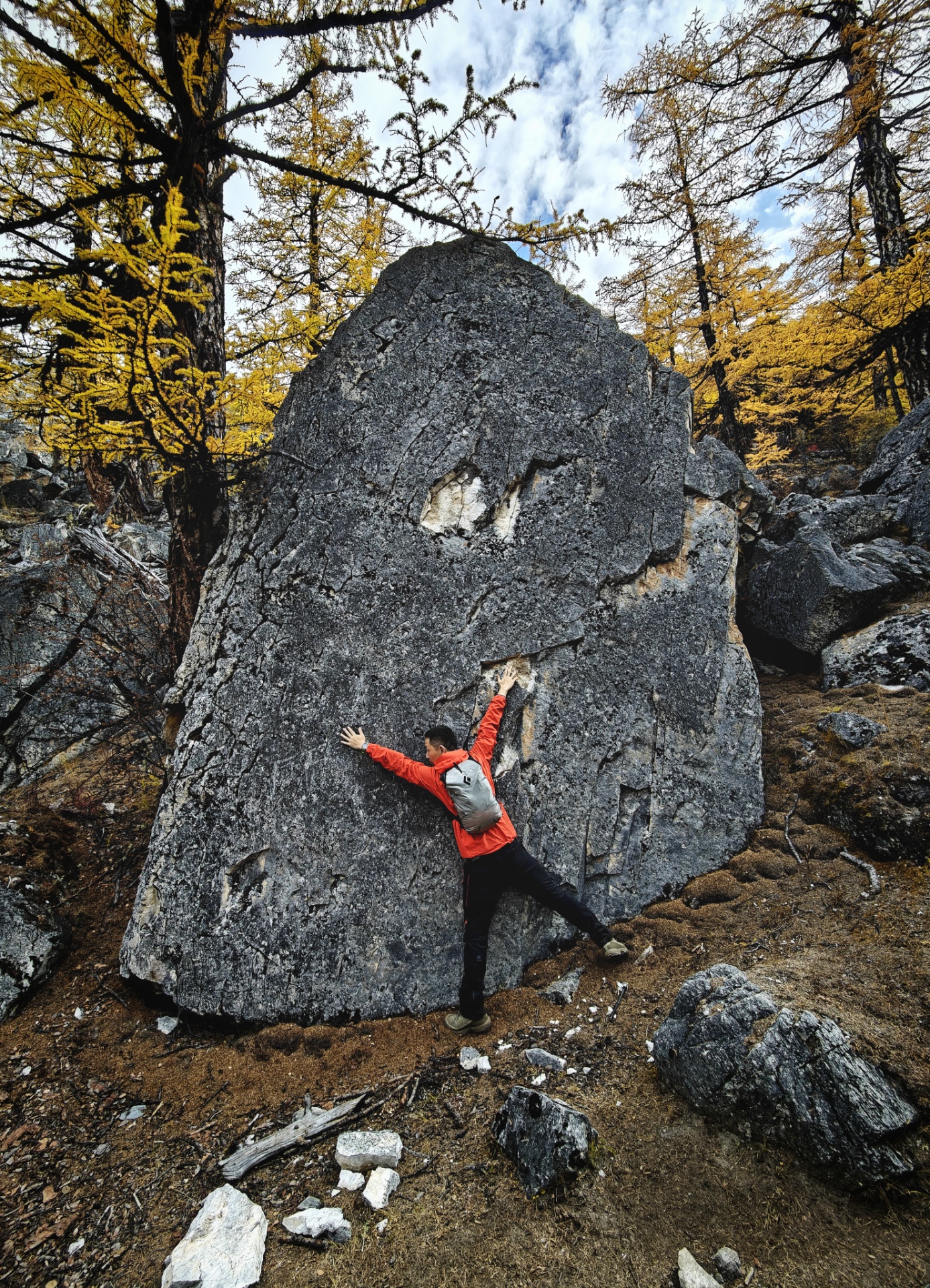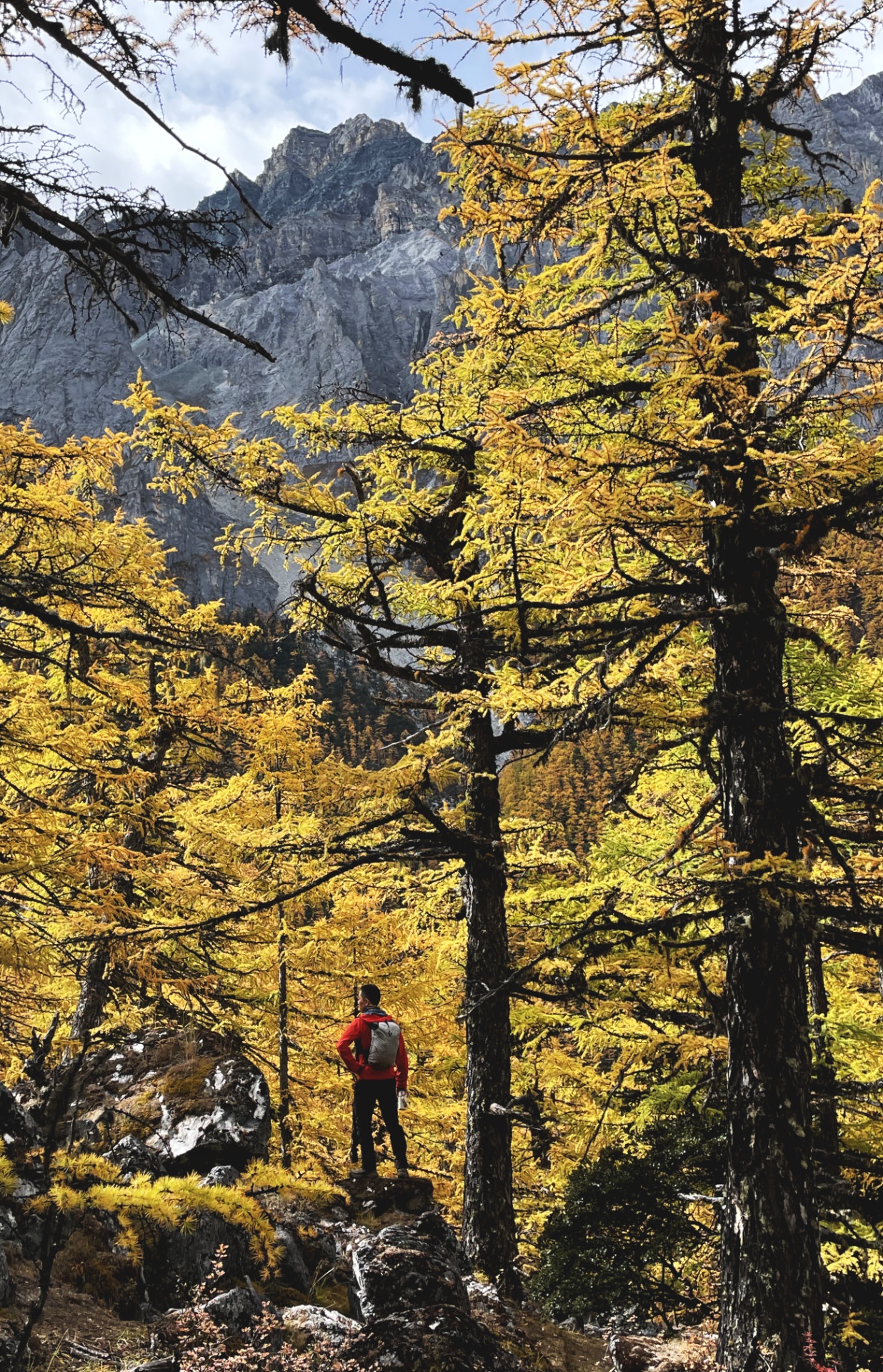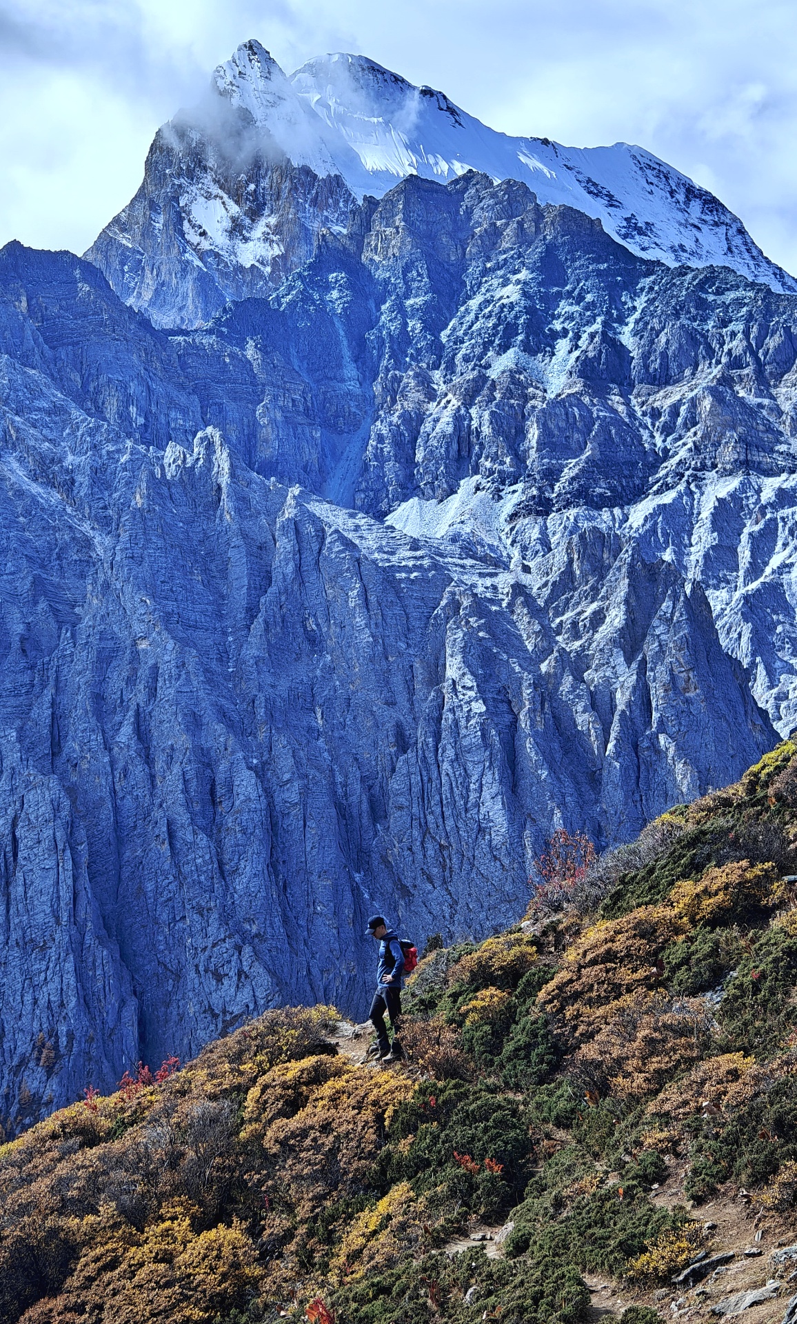 头疼,糟糕,高反了。昨晚没睡好,起来拉开窗帘,远处的山头已白,下雪了,今年第一场雪。早餐后泡了杯咖啡出发,行李丢在民宿,出山时可以联系老板直接送到大巴上。