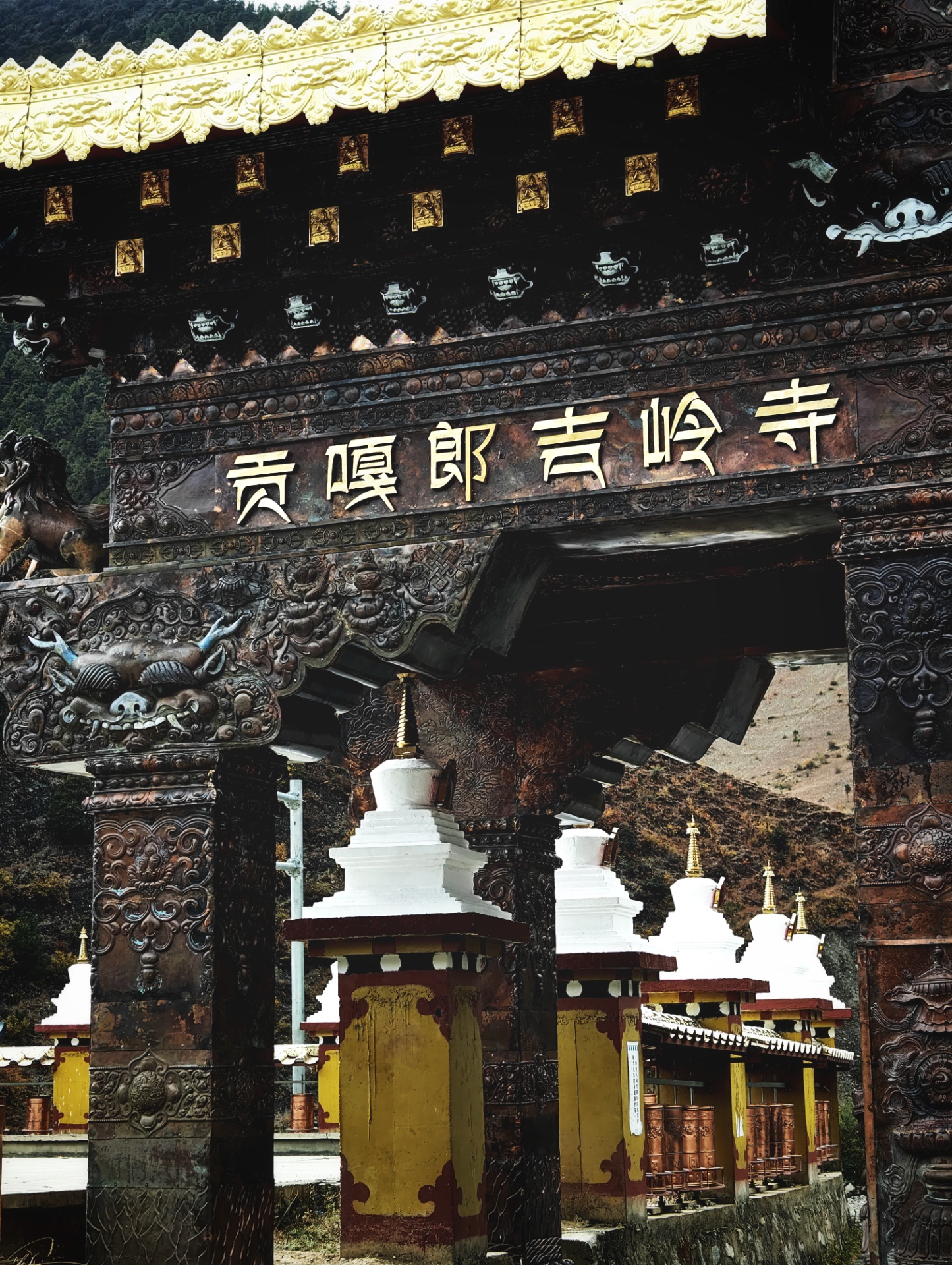 离开婚宴后,时间尚早,于是打算到附近的贡嘎朗吉岭寺转转,它的后面阿西村后山还有个远眺亚丁三神山的平台,可以一并游览。
