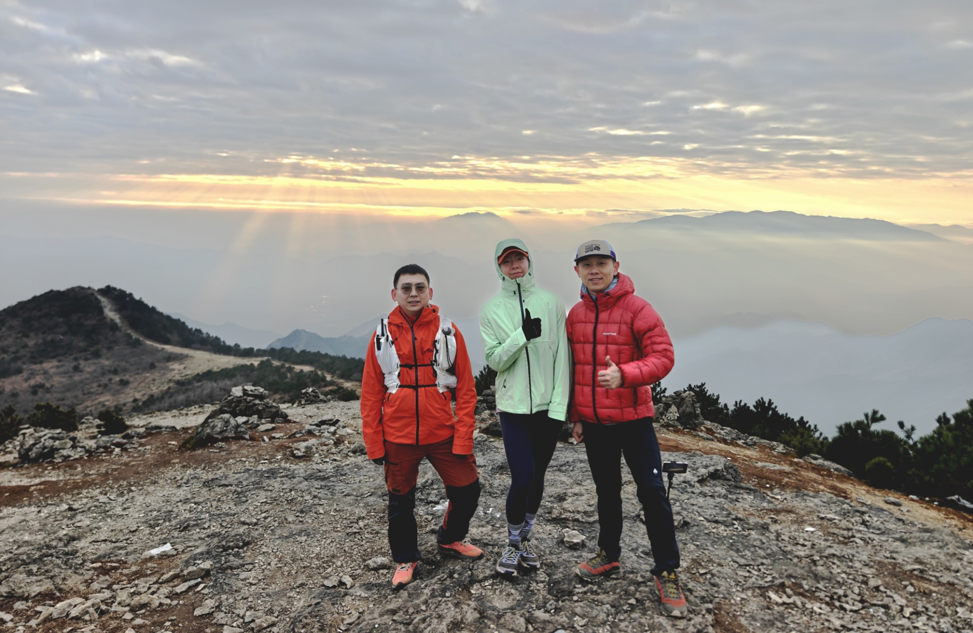 这个周末山顶也有不少驴友,部分是从“偷懒”路线上来看日出的,另外一大部分都是重装过来露营的。