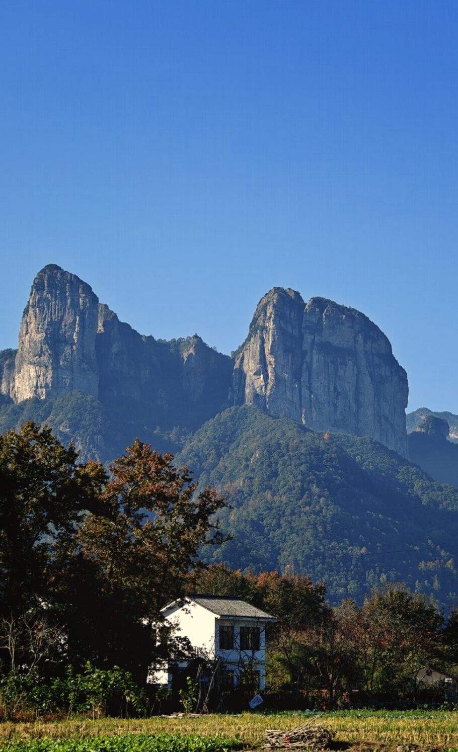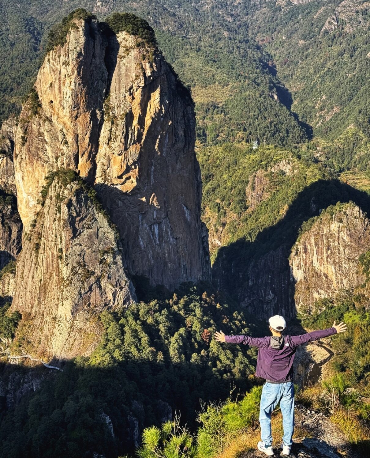 岭上人家的后山是一个景区,叫石栀岩。村后的步道可以直接抵达景区门口,有趣的是,景区的标志性石栀岩,在步道的最高处有一个非常好的角度欣赏,而且步道修葺过,很宽,感觉不久是要被纳入景区圈钱的。