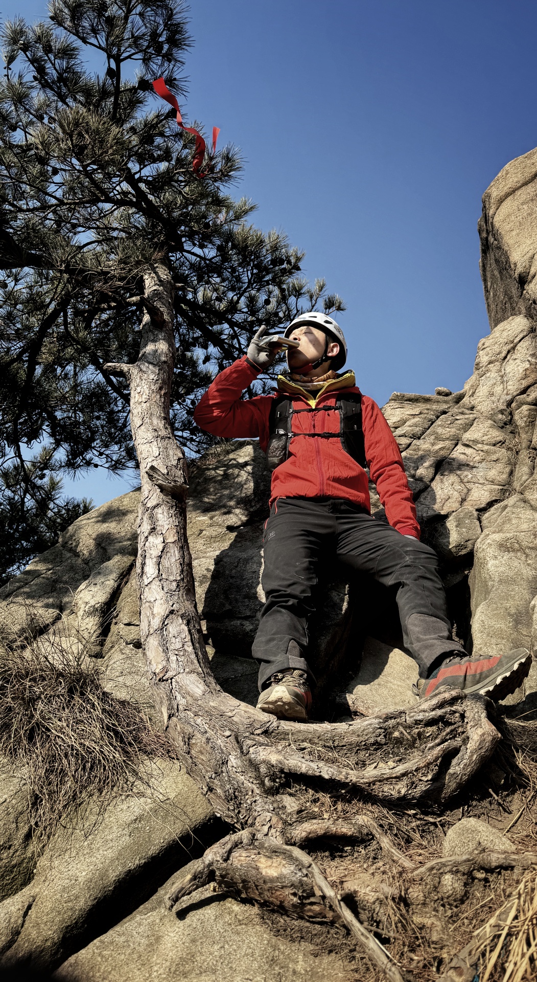 简单说下爬山体会吧,整体的爬山体验感很强,部分点位的暴露感很强,特别是豺狗狼尖上去后的小平台,我是没胆站起来在上头蹦跶的,只好乖乖坐着,怂就一个字,哈哈哈。
